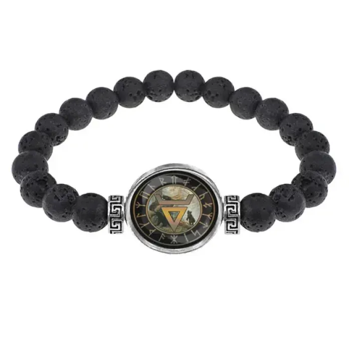 Стрейч-браслет из натуральной лавы диаметром 8 мм с кулоном под стеклянной линзой.
