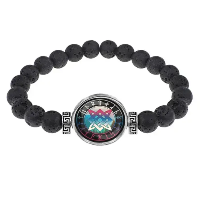 Стрейч-браслет из натуральной лавы диаметром 8 мм с изображением под выпуклой стеклянной линзой.