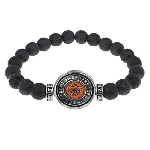 Браслет из лавы 8 мм Кельтская пентаграмма BSL-0270
