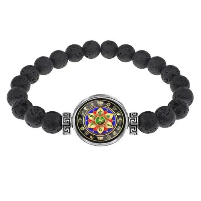 Браслет из лавы 8 мм Ом Мани Падме Хум BSL-0277