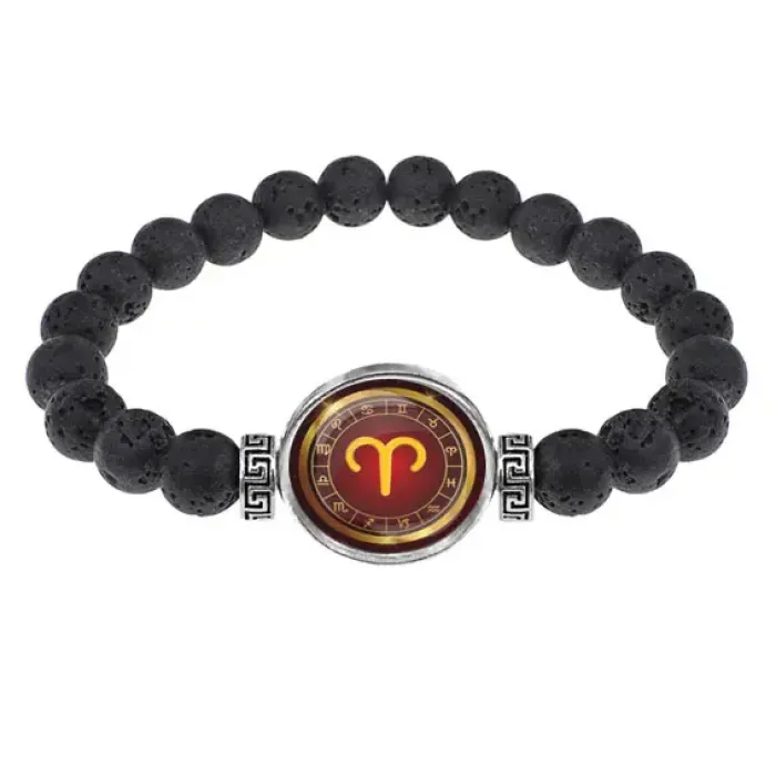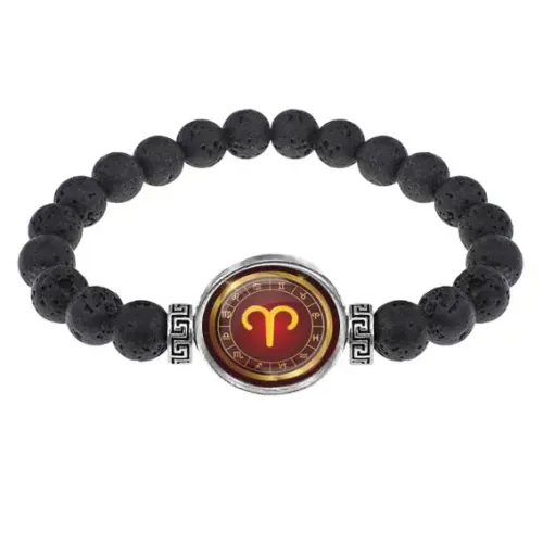 Стрейч-браслет из натуральной лавы диаметром 8 мм — это не только стильный аксессуар, но и символ силы и мужественности. С изображением знака зодиака Овен под выпуклой стеклянной линзой, он станет отличным подарком для ценителей астрологии.