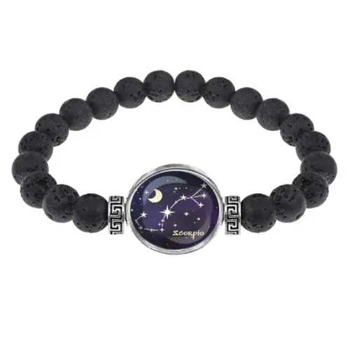 Стрейч-браслет из натуральной лавы диаметром 8 мм — это не только стильный аксессуар, но и символ силы и мудрости. С изображением знака зодиака Скорпион, он станет отличным подарком для ценителей астрологии.