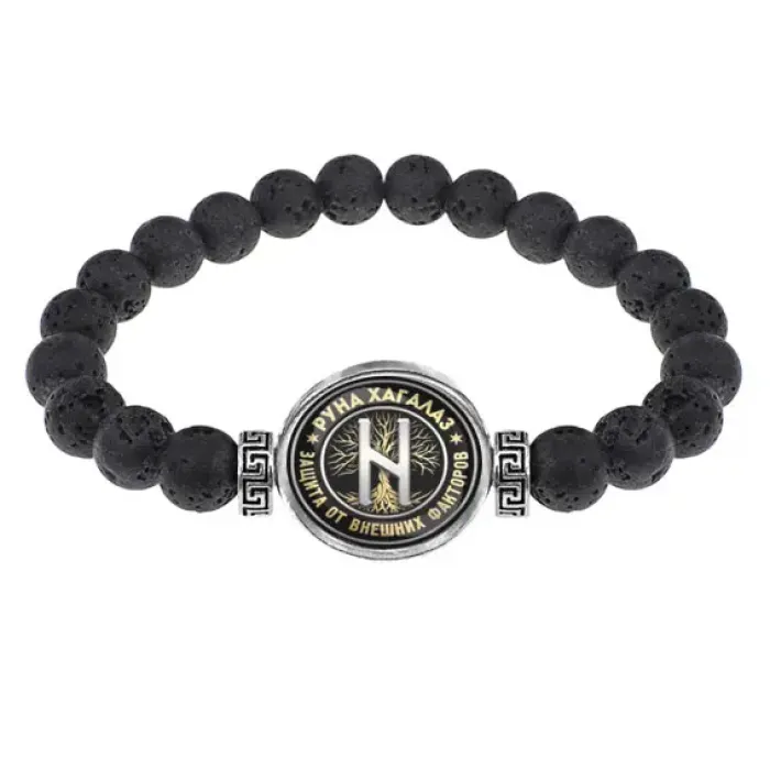 Браслет из лавы 8 мм Руна Хагалаз BSL-0339