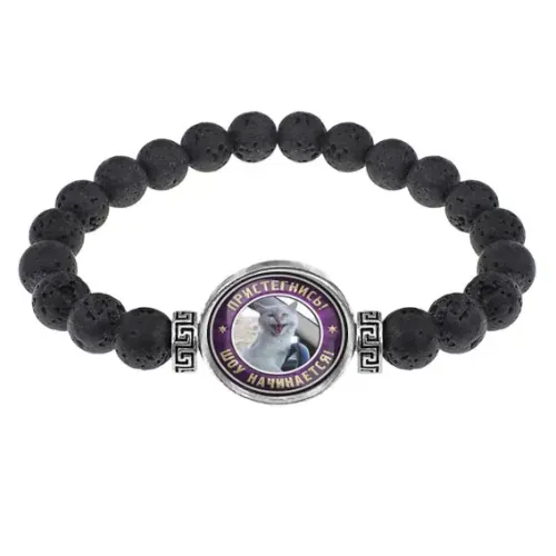 Стрейч-браслет из натуральной лавы диаметром 8 мм с декоративным элементом под выпуклой стеклянной линзой.