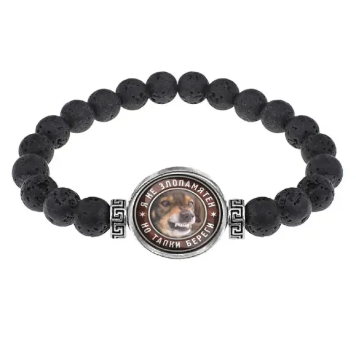 Стрейч-браслет из натуральной лавы диаметром 8 мм с изображением под выпуклой стеклянной линзой.