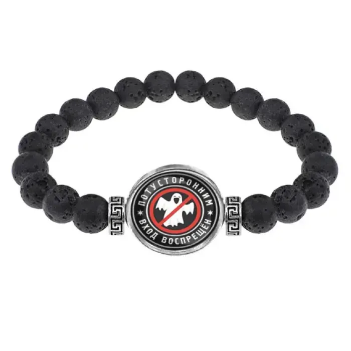 Браслет из лавы 8 мм Потусторонним вход воспрещен BSL-0376