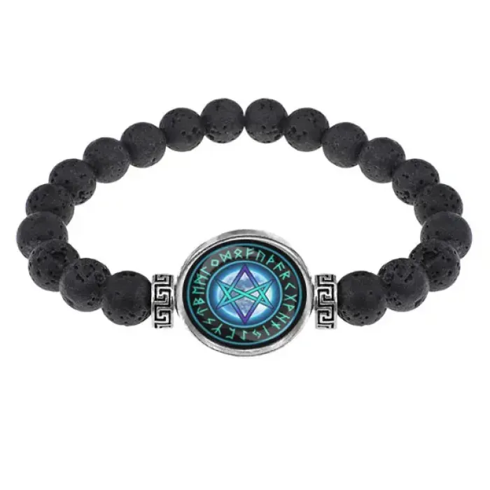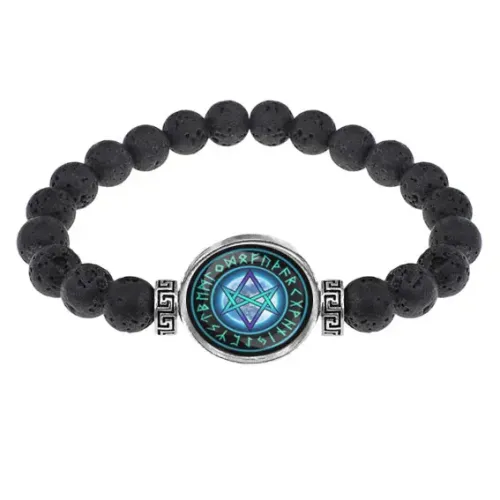 Браслет из лавы 8 мм Уникурсальная гексаграмма BSL-A024