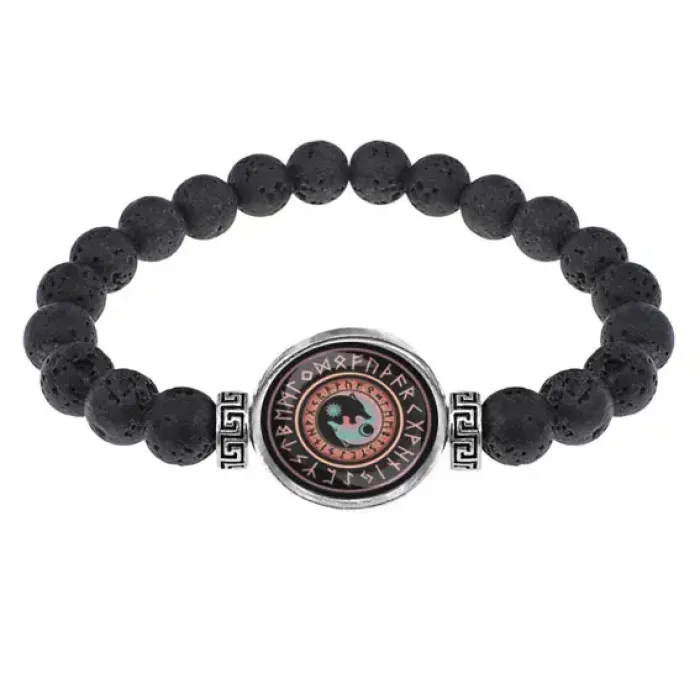 Браслет из лавы 8 мм Волки Инь-Ян BSL-A025