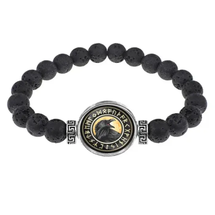 Стрейч-браслет из натуральной лавы диаметром 8 мм с изображением под выпуклой стеклянной линзой.