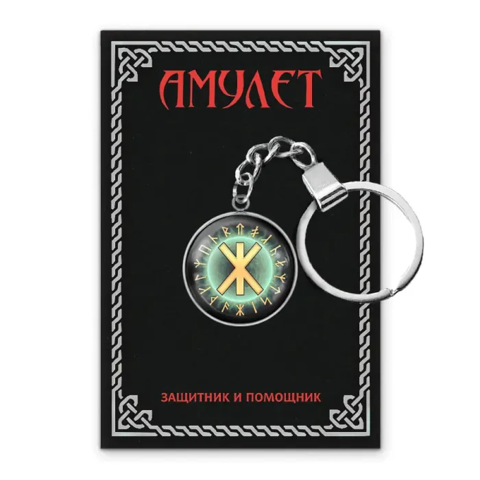 Брелок-амулет из нержавеющей стали, который сочетает в себе прочность и элегантность. Диаметр брелока составляет 26 мм, а изображение защищено выпуклой стеклянной линзой диаметром 25 мм. Упакован в полипропиленовый пакет с подложкой и этикеткой, комплектуется кольцом для ключей на цепочке.