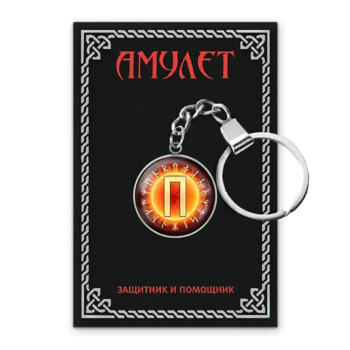 Брелок-амулет из прочной нержавеющей стали, выполненный с любовью к славянской культуре. Этот уникальный аксессуар имеет диаметр 26 мм и украшен изображением под выпуклой стеклянной линзой диаметром 25 мм. В комплект входит кольцо для ключей на цепочке, а также упаковка в полипропиленовом пакете с подложкой и этикеткой.