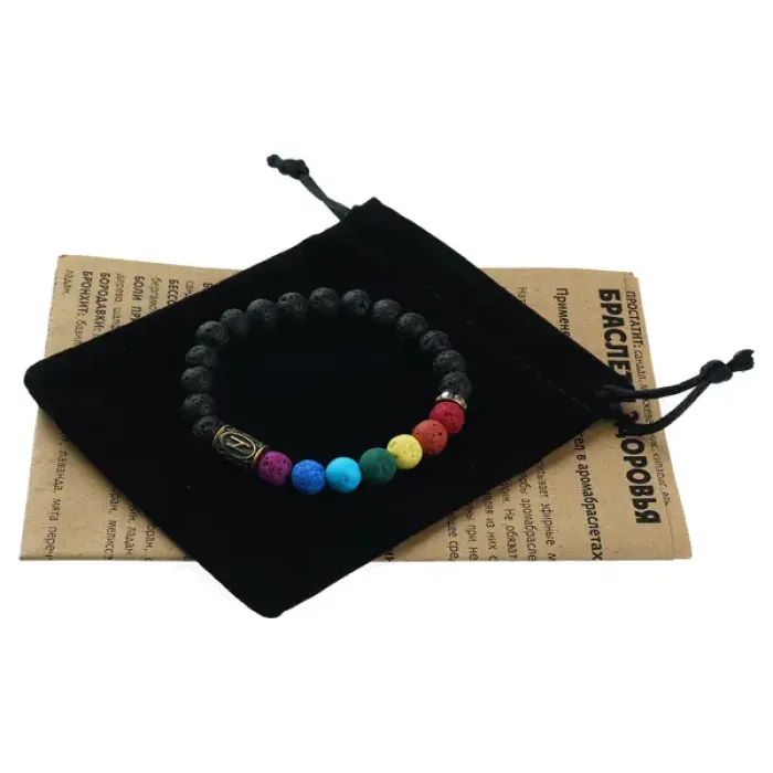 Размеры и комплектация: Внутренний диаметр браслета около 5.5 см, диаметр бусин 8 мм. В комплекте буклет со значениями чакр и рун, бархатный мешочек для хранения. Упаковка — прозрачный пакет с еврослотом.