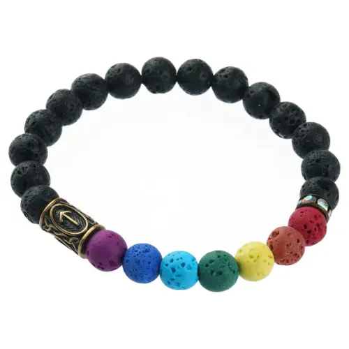 Стрейч-браслет с подвеской в виде руны Тейваз из натурального камня лава.