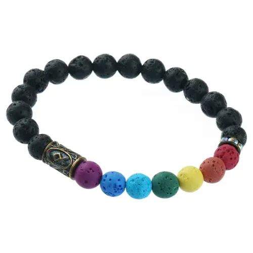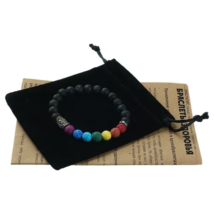 Размеры и комплектация: Внутренний диаметр браслета ~5.5 см, диаметр бусин 8 мм. В комплекте бархатный мешочек для хранения и буклет со значениями чакр, рун и описаниями эфирных масел.
