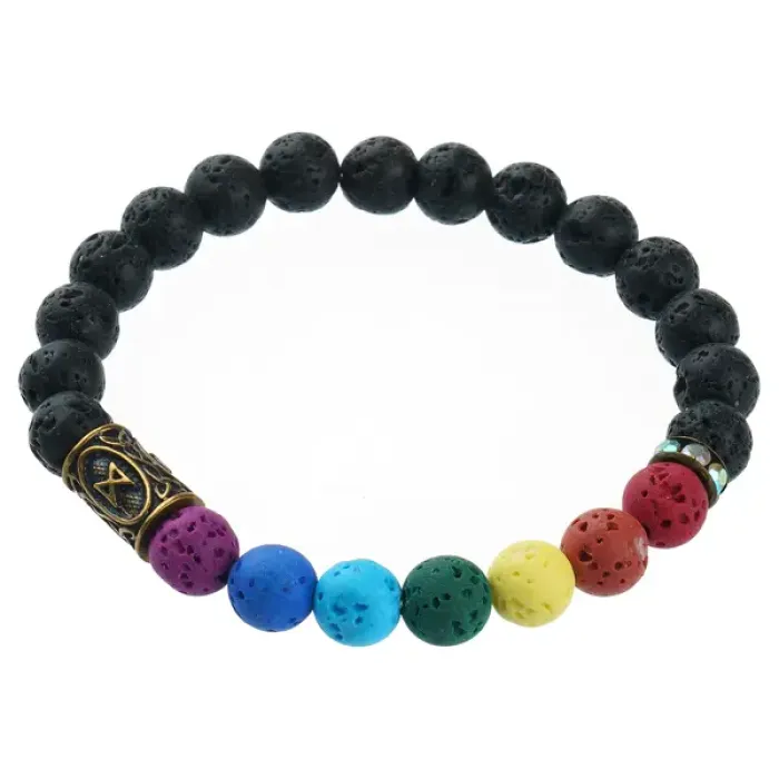 Стрейч-браслет с 7 чакрами из натурального камня Лава со скандинавской руной Дагаз.