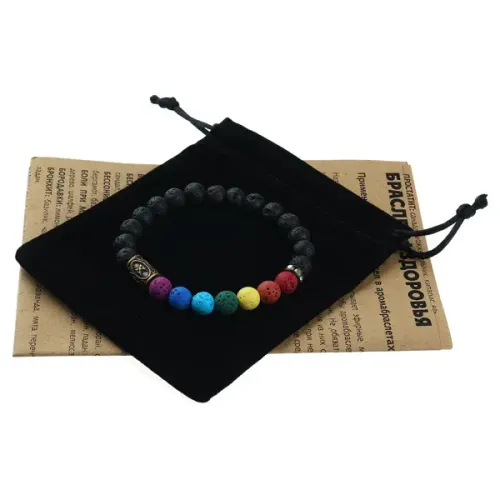 Назначение и особенности: Сувенирный браслет. Камень Лава способен впитывать эфирные масла.