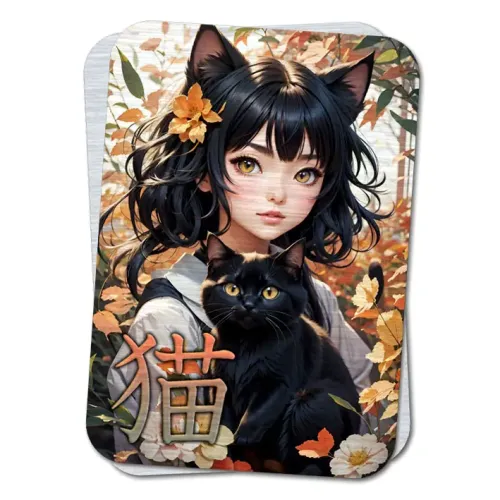 Магнит с японской символикой, выполненный из металла толщиной 0,45 мм. Размер изделия составляет 56х80 мм. Упакован в прозрачный пакетик с описанием. Знак Кошка или Неко олицетворяет грацию и женственность, придавая обладательнице карты привлекательность, элегантность и загадочность.