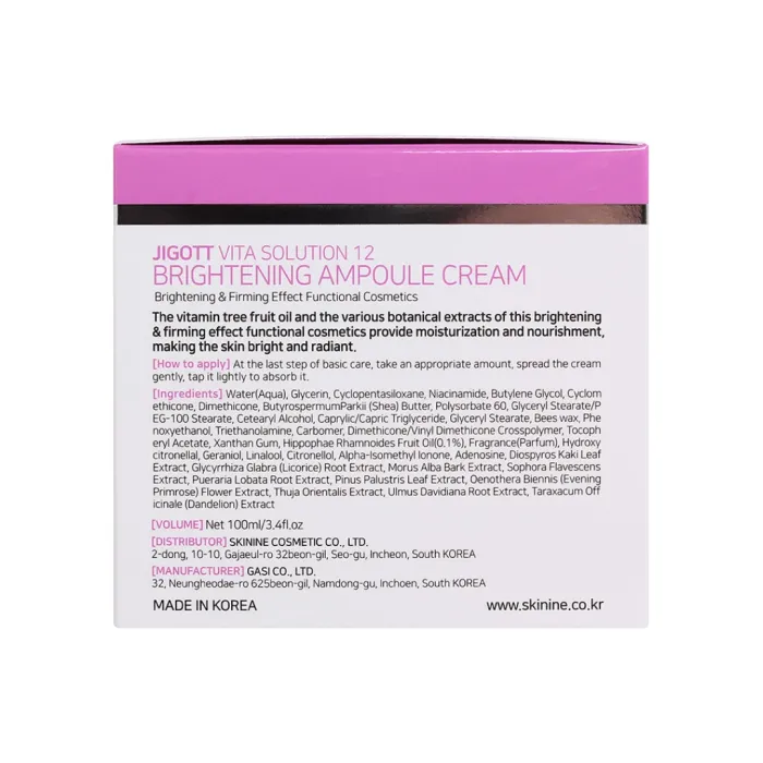 Крем для лица ампульный осветляющий JIGOTT VITA SOLUTION 12 BRIGHTENING AMPOULE CREAM, 100 мл