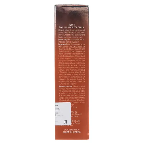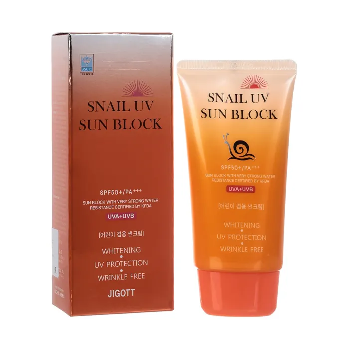 Солнцезащитный крем JIGOTT SNAIL UV SUN BLOCK CREAM SPF50 PA+++ с муцином улитки обеспечивает надежную защиту кожи от ультрафиолетовых лучей. Его легкая текстура быстро впитывается, не оставляя ощущения липкости. Крем способствует разглаживанию морщин и осветлению пигментных пятен, благодаря чему кожа выглядит более свежей и ухоженной.