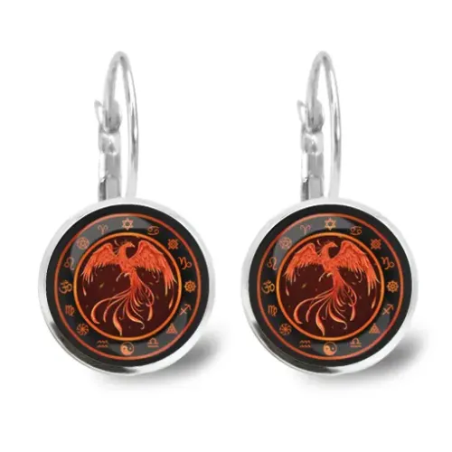 Серьги с изображением под выпуклой стеклянной линзой. Замок типа левербэк.