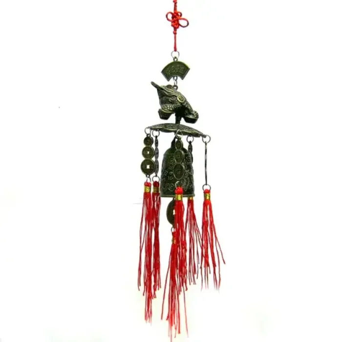 Подвеска Жаба с монетой и колокол-пагода 39см N126