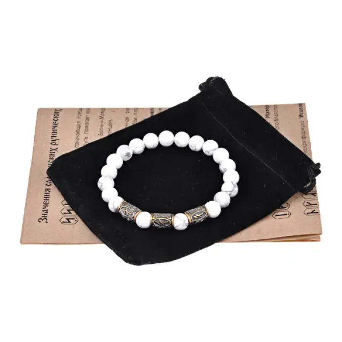 Славянский рунический браслет Берегиня, 8мм, Кахолонг BSRS-002