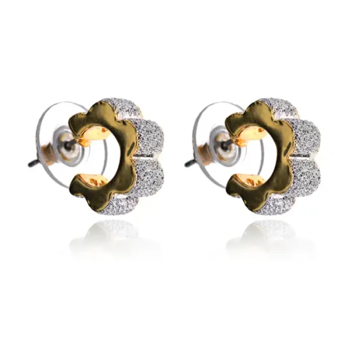 Серьги-пусеты в форме шестерёнки из бижутерного сплава с двухцветным покрытием.