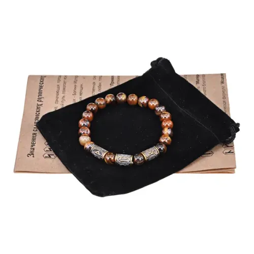 Славянский рунический браслет Привлечение денег, 8мм, Тигровый глаз BSRS-007