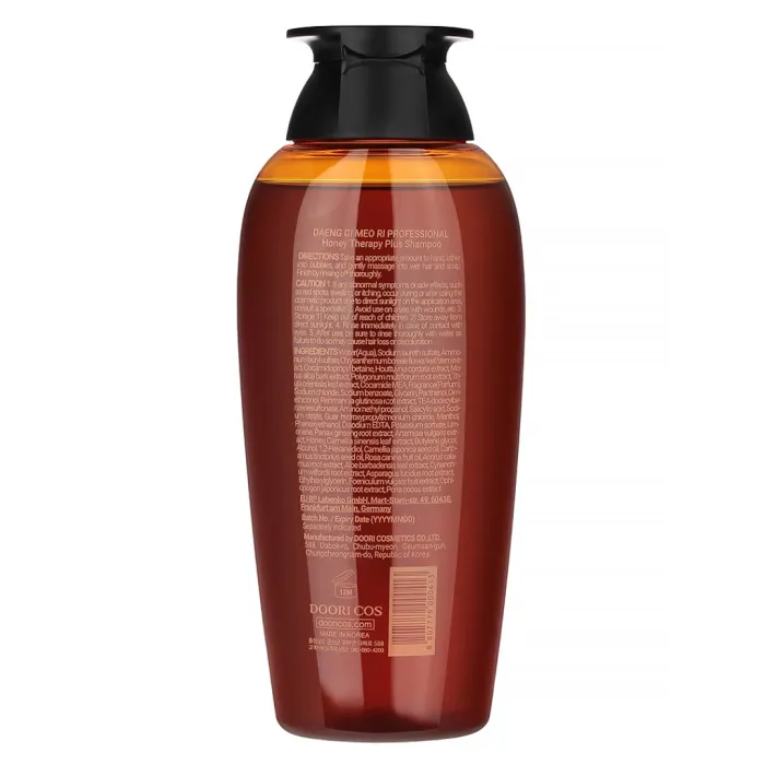 Шампунь DAENG GI MEO RI Professional Honey Therapy Plus Shampoo с маточным молочком разработан для улучшения циркуляции крови и обменных процессов в коже головы. Этот продукт укрепляет корни волос, препятствует их выпадению и оказывает тонизирующее действие. Шампунь придает силу и прочность ослабленным волосам, делая их более устойчивыми к повреждениям.
