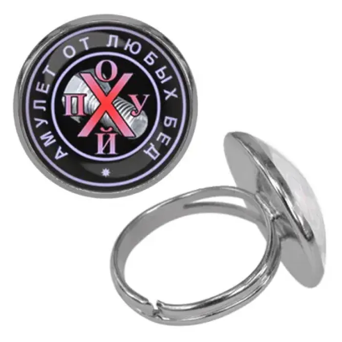 Безразмерное кольцо-амулет с изображением под выпуклой стеклянной линзой.