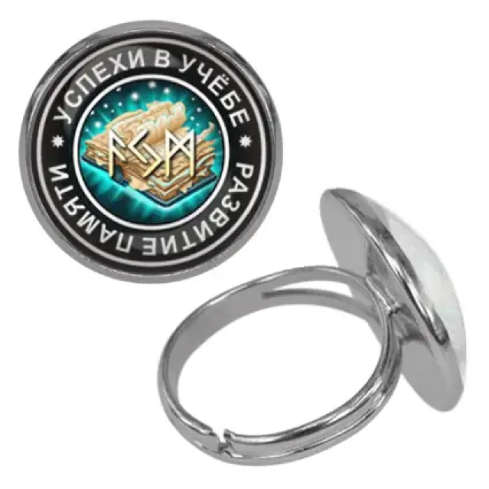 Безразмерное кольцо «Успехи в учёбе и развитие памяти» — сувенирный аксессуар из бижутерного сплава с выпуклой стеклянной линзой.