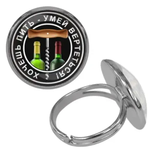 Безразмерное кольцо из бижутерного сплава с декоративным элементом под стеклянной линзой.