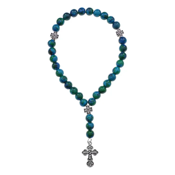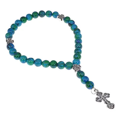 Чётки ручной работы с бусинами из синтетической хризоколлы — это не только стильный аксессуар, но и предмет духовной практики. Они традиционно используются в православии для молитвы и медитации, помогая сосредоточиться на внутреннем мире.