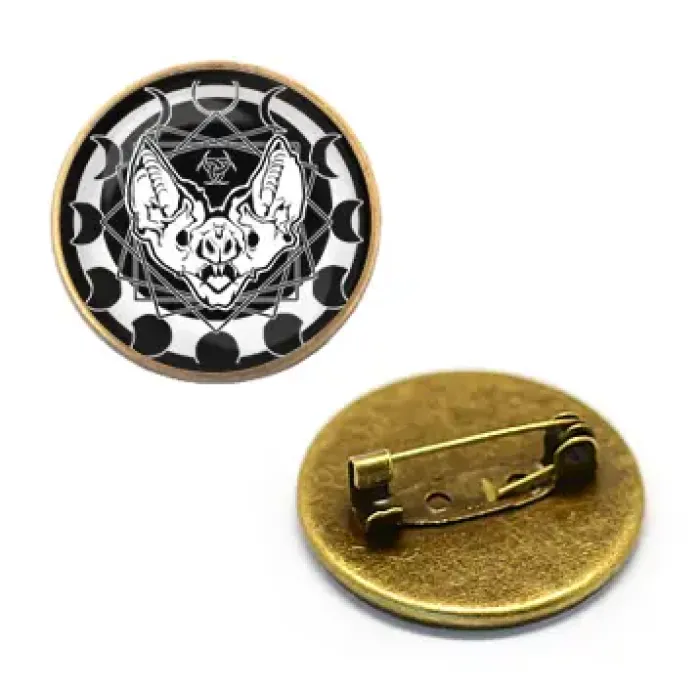 Значок с изображением летучей мыши под выпуклой стеклянной линзой — это стильный аксессуар, который станет отличным дополнением к любому наряду. Он символизирует ночную магию и таинственность, что делает его идеальным подарком для ценителей необычных вещей.