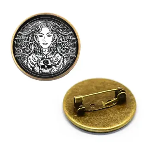 Значок 'Молодая ведьма' — это стильный аксессуар, который станет отличным дополнением к любому наряду. Изготовленный из качественного материала и покрытый выпуклой стеклянной линзой, он надежно сохраняет яркость изображения. Размер значка составляет 27 мм в диаметре, а бронзовый цвет придаёт ему особую элегантность.