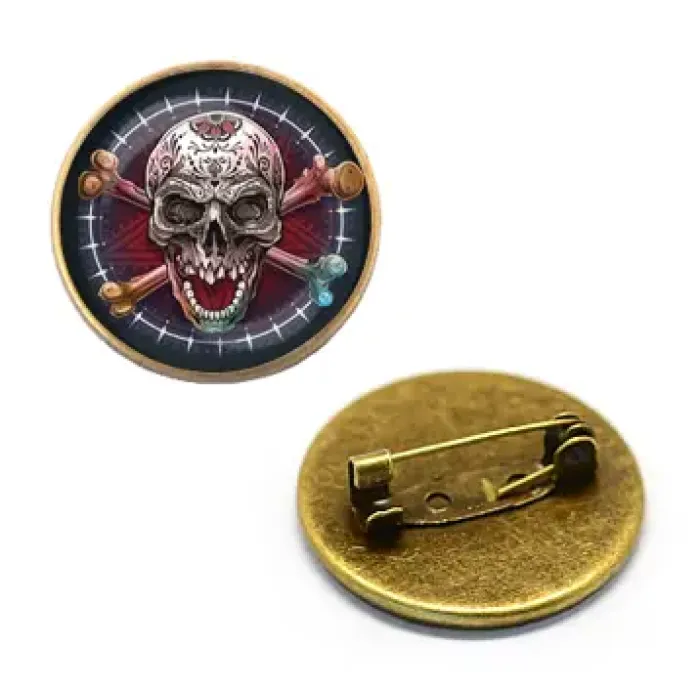 Значок с изображением черепа — это стильный аксессуар для любителей оригинальных деталей в образе. Он имеет диаметр 27 мм и выполнен в бронзовом цвете, что придаёт ему особую привлекательность и шарм. Изображение защищено под выпуклой стеклянной линзой, что делает его ярким и выразительным. Значок упакован в полипропиленовый пакетик, что обеспечивает его сохранность при транспортировке. Этот предмет станет отличным дополнением к одежде или сумке и подчеркнёт индивидуальность владельца.