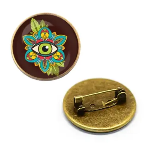 Значок с изображением глаза под выпуклой стеклянной линзой — это не только стильный аксессуар, но и символ защиты и удачи. Такой значок традиционно ценится за свою способность привлекать положительную энергетику и оберегать от негативного влияния.