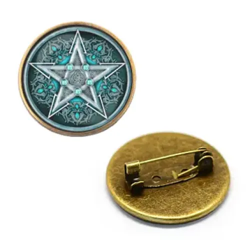 Значок Пентаграмма — это стильный аксессуар с изображением под выпуклой стеклянной линзой, который станет отличным дополнением к любому образу. Его символика часто ассоциируется с защитой и гармонией, что делает его не только модным элементом, но и предметом с глубоким смыслом.