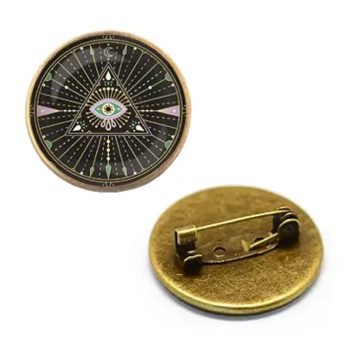 Значок с изображением Всевидящего ока — символа мудрости и защиты, который традиционно ассоциируется с духовным просветлением. Этот стильный аксессуар станет отличным дополнением к любому образу или подарком для близких.