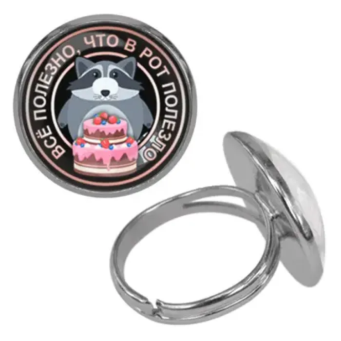 Безразмерное кольцо с изображением под стеклянной линзой. Сувенирное украшение из бижутерного сплава.
