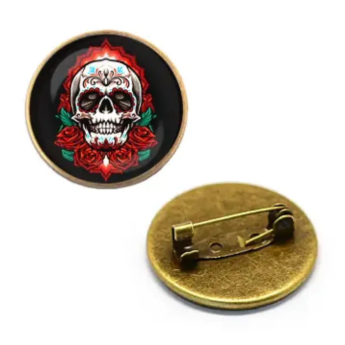 Значок с изображением черепа и роз, покрытый выпуклой стеклянной линзой, привлекает внимание своим оригинальным дизайном. Этот аксессуар станет отличным дополнением к любому наряду или стильному образу. Размер значка составляет 27 мм в диаметре, что делает его компактным и удобным для ношения. Упакован в полипропиленовый пакетик, обеспечивающий защиту от повреждений при транспортировке. Значок идеально подходит для подарка или как элемент коллекции сувениров.