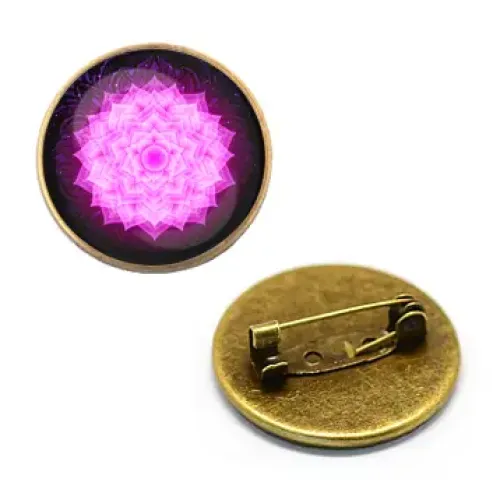 Значок Сахасрара чакра — это стильный аксессуар, который символизирует духовное развитие и гармонию. Он выполнен с изображением чакры под выпуклой стеклянной линзой, что придаёт ему особую выразительность и привлекательность.
