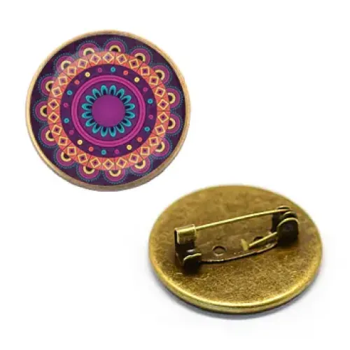 Значок с изображением мандалы под выпуклой стеклянной линзой — это не просто аксессуар, а символ гармонии и миропорядка. Мандала представляет собой сакральное изображение, которое в восточной культуре олицетворяет модель мира божеств и служит источником вдохновения для многих людей.