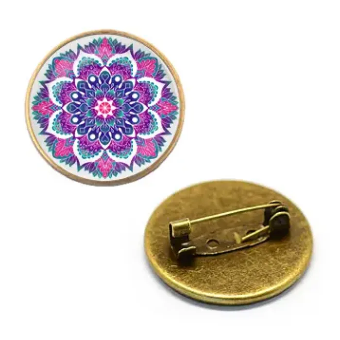 Значок с изображением мандалы под выпуклой стеклянной линзой — это не только стильный аксессуар, но и символ гармонии и миропорядка. Мандала представляет собой сложную геометрическую фигуру, которая традиционно используется как модель мира божеств. Этот значок упакован в полипропиленовый пакетик, что делает его удобным для хранения и транспортировки. Размер значка составляет 27 мм в диаметре, а бронзовый цвет придаёт ему особую элегантность. Прекрасный выбор для тех, кто ценит уникальные детали в своем образе.