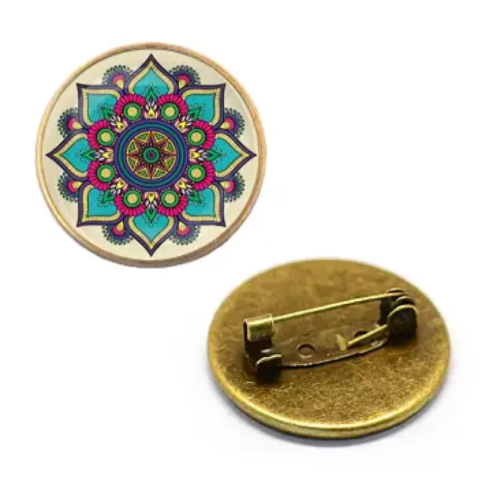 Значок с изображением мандалы под выпуклой стеклянной линзой — это не просто аксессуар, а символ гармонии и миропорядка. Мандала представляет собой сложную геометрическую фигуру, которая традиционно используется в различных культурах как модель мира божеств.