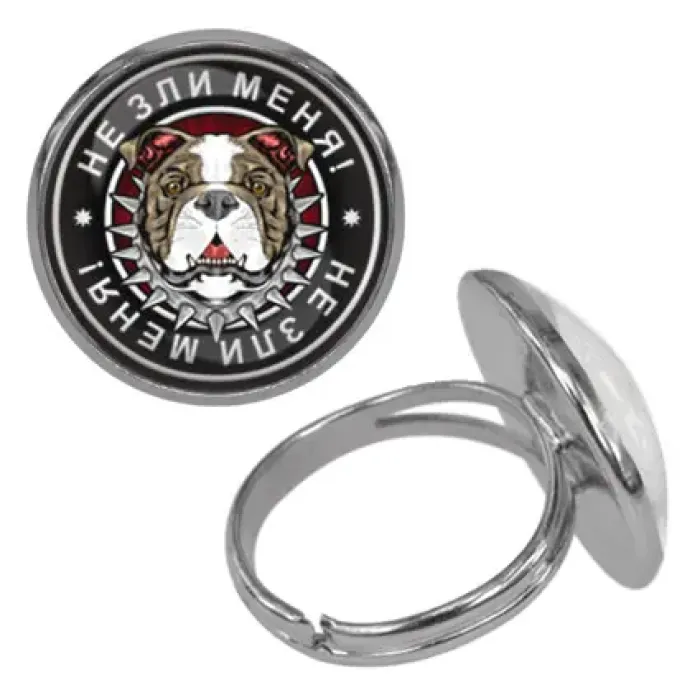 Безразмерное кольцо «Не зли меня» — сувенирный аксессуар из бижутерного сплава с изображением под выпуклой стеклянной линзой.