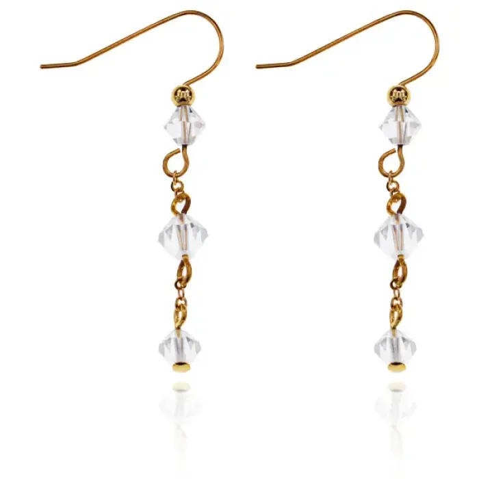 Серьги из бижутерного сплава с золотым покрытием и прозрачными кристаллами в виде трёх ромбов.