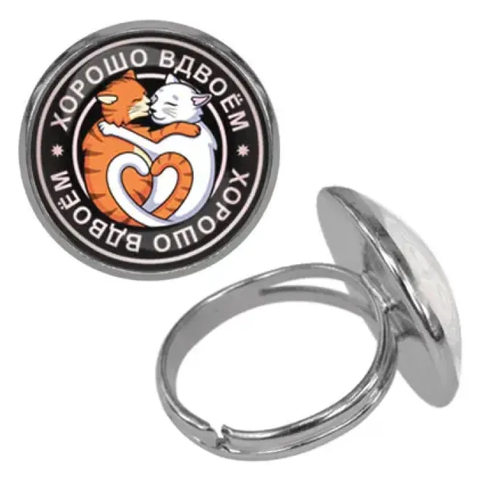 Безразмерное кольцо "Хорошо вдвоём" — это стильный аксессуар, который станет прекрасным дополнением к любому образу. С диаметром 18 мм и изображением под выпуклой стеклянной линзой, оно привлекает внимание и добавляет яркости. Изготовлено из бижутерного сплава с покрытием под серебро, что обеспечивает долговечность и привлекательный внешний вид. Упаковано в прозрачный пакет, что делает его идеальным вариантом для подарка или личного использования.