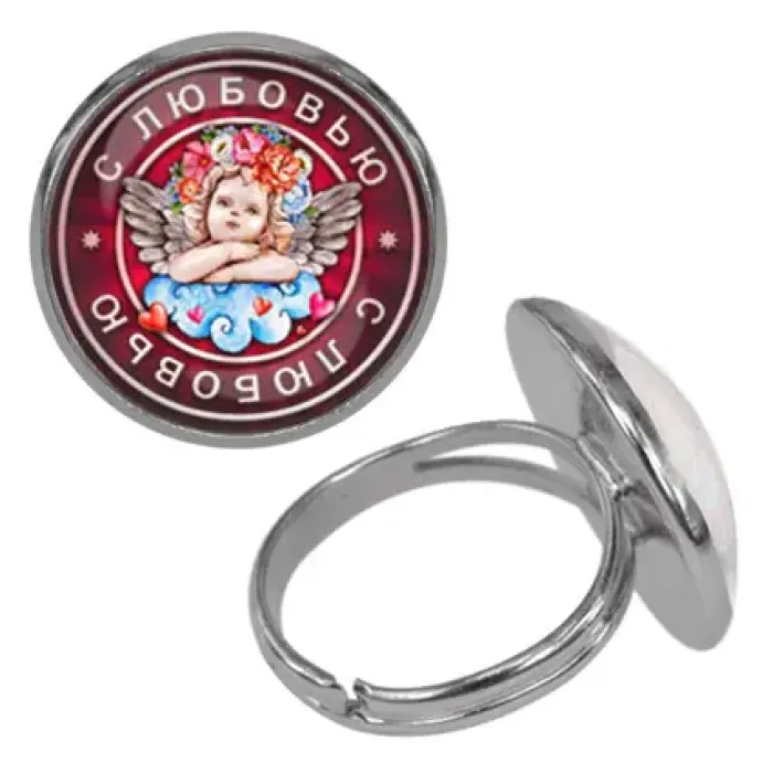 Безразмерное кольцо «С любовью» — это стильный аксессуар, который станет прекрасным подарком для близких. Символизируя нежность и заботу, оно идеально подходит для выражения чувств. Кольцо выполнено из бижутерного сплава с покрытием под серебро и украшено изображением диаметром 18 мм под выпуклой стеклянной линзой. Упаковано в прозрачный пакет, что делает его готовым к дарению или приятному сюрпризу.