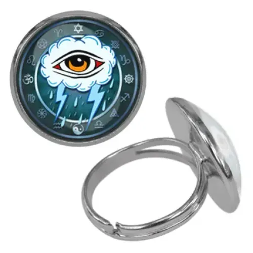 Безразмерное кольцо с изображением и выпуклой стеклянной линзой.